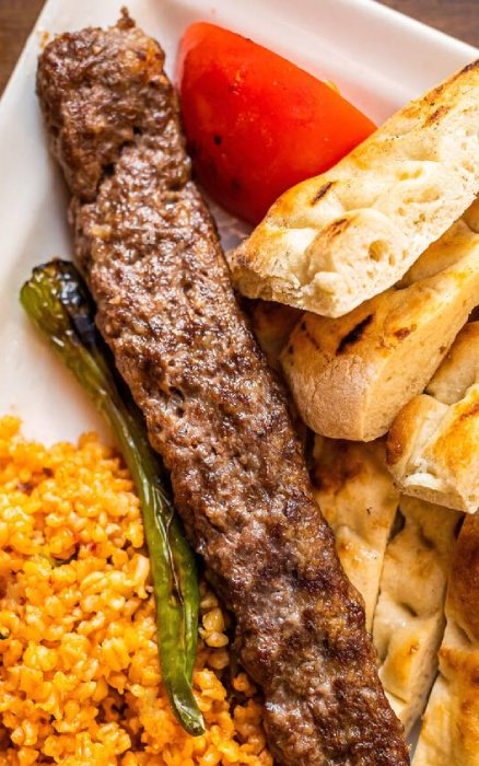 Turkish cuisine is known not only for introducing the world to shish kebab but for a variety of delicious grilled meats and kebabs. Adana Kebap is the signature dish named after one of Turkey’s most famous kebab cities, Adana. This dish is made with ground beef or lamb kneaded together with onion, garlic, and Turkish spices, then packed by hand around large, flat metal skewers.